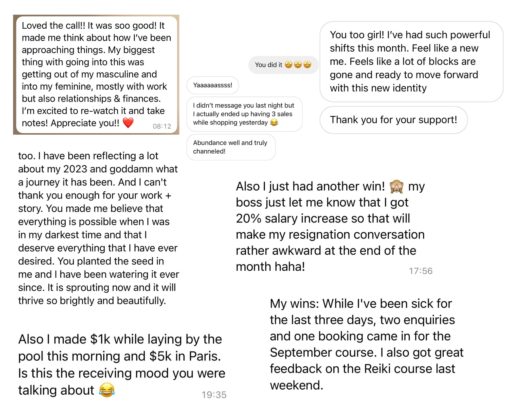 All the techniques I teach to my coaching clients, I have personally created or have learnt and adapted over the course of the past 5 years. And with my support, my beautiful clients have been able to reprogram their subconscious minds for success, connect deeply with themselves, and manifest + co-create a reality they are excited to wake up to every single day.